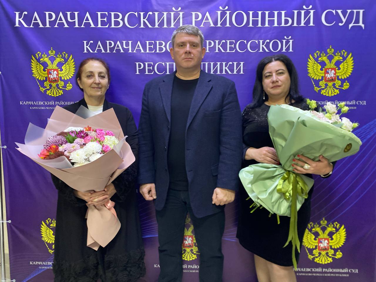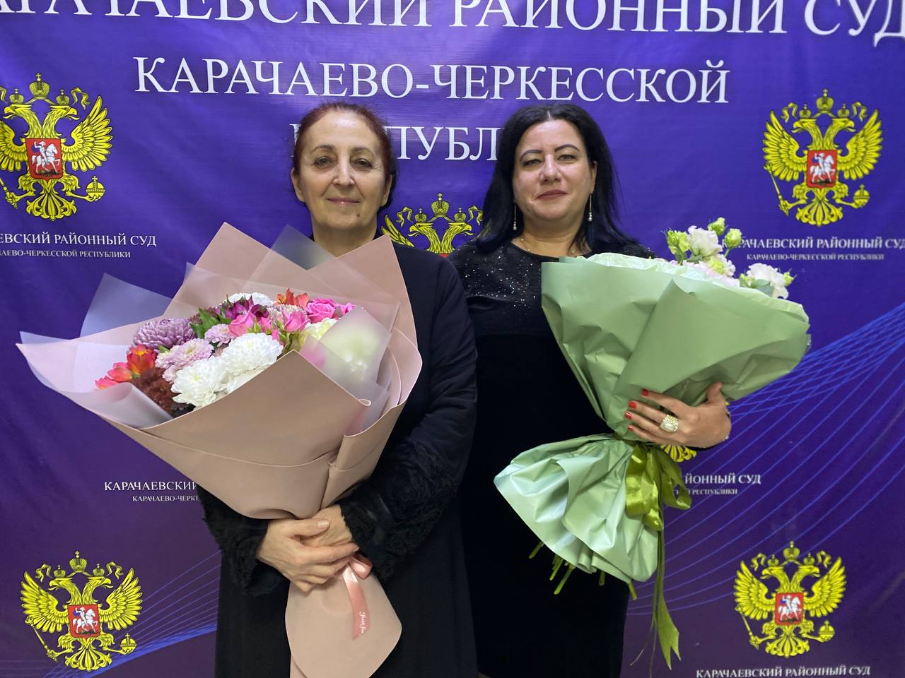 судебного заседания Хачатурян Н.А. Обращаясь к юбилярам, председатель суда Тарасов М.В. отметил их высокий профессионализм, безупречное исполнение служебных обязанностей и большой личный вклад в обеспечение правосудия. В торжественной обстановке юбилярам вручены цветы от коллектива суда. Коллеги тепло поздравили Мёлек Конакбиевну и Наиру Абрамовну, пожелав им крепкого здоровья, счастья, благополучия и дальнейших успехов в их важной и ответственной работе. |