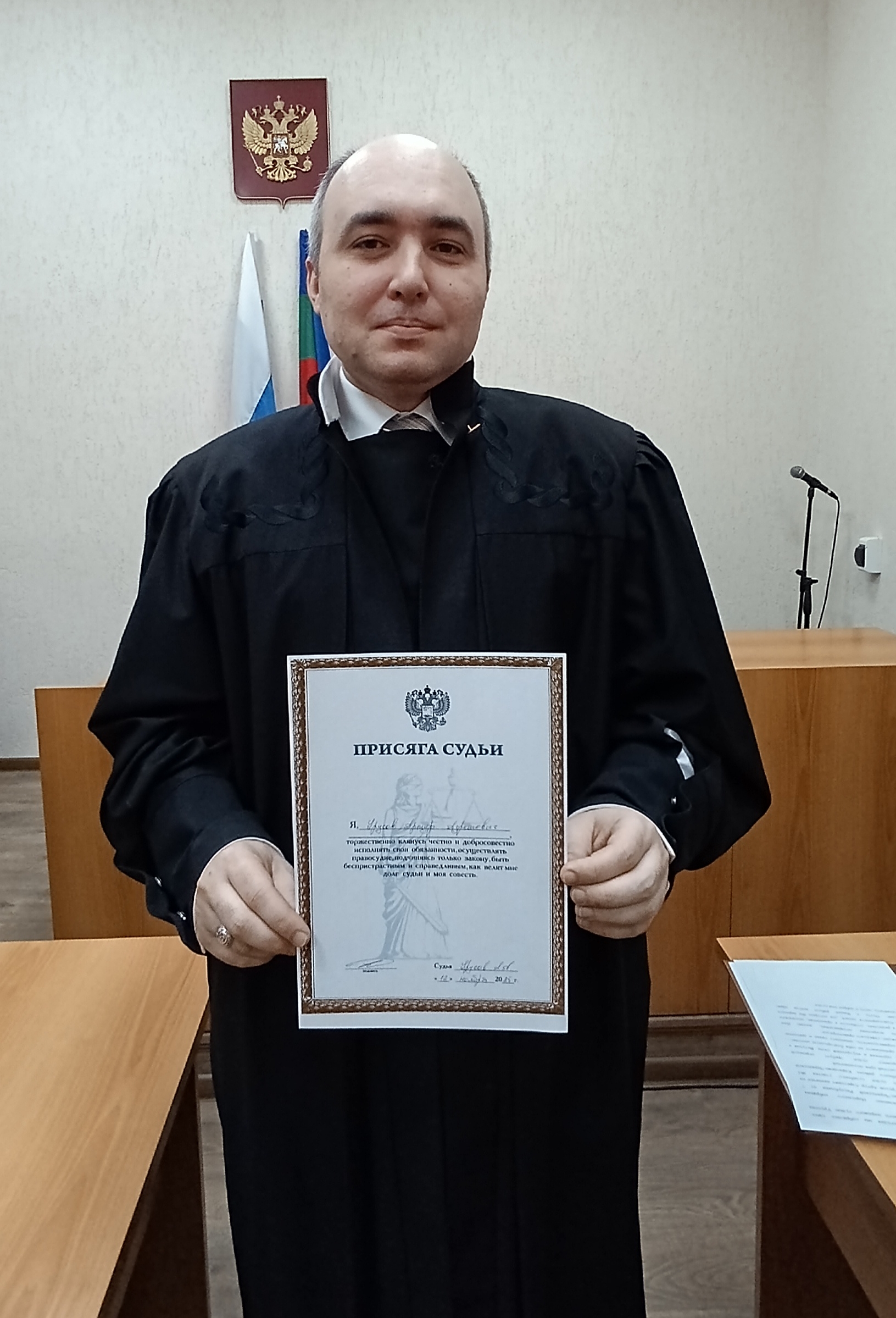 ![]() 12 ноября 2025 года заместитель Председателя Верховного Суда Карачаево-Черкесской Республики Щербина Оксана Николаевна в торжественной обстановке представила руководству Карачаевского районного суда, судьям и мировым судьям судебного района Урусова Артура Азретовича, назначенного Постановлением Народного Собрания (Парламента) КЧР № 243 от 7 ноября 2025 года. Впервые назначенный на должность судьи Урусов А.А. в торжественной обстановке принес присягу, принимая на себя ответственность за справедливое и беспристрастное осуществление правосудия. Оксана Николаевна поздравила вновь назначенного мирового судью, и пожелала ему успешной и плодотворной работы. К поздравлениям присоединились и другие присутствующие, пожелав ему карьерного роста и конструктивного взаимодействия с коллегами. Артур Азретович, в свою очередь, поблагодарил за теплый прием и пообещал приложить максимум усилий для поддержания высокого уровня профессионализма в своей деятельности. Свою профессиональную деятельность в суде Урусов А.А. начал с октября 2008 года в должности консультанта Карачаевского районного суда затем секретарем судебного заседания данного суда. Также работал помощником судьи в Карачаевского районного суда Карачаево-Черкесской Республики. С января 2025 года работал главным специалистом отдела обеспечения судопроизводства по уголовным делам Черкесского городского суда Карачаево-Черкесской республики. |